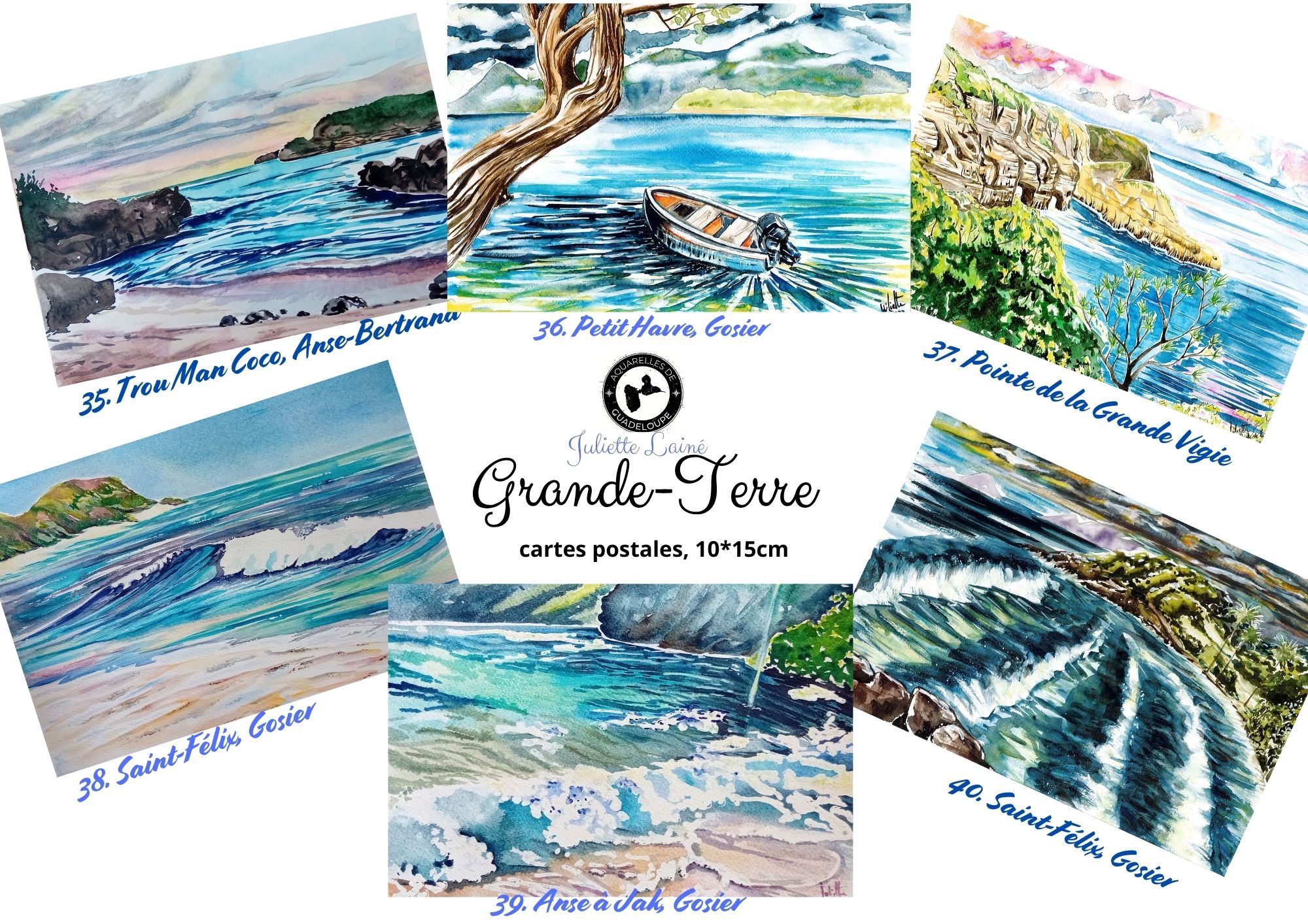 - En Guadeloupe: dans la boutique partagée "Les mondes du Poisson Lune" (Bouillante), au Parc de la Source (Bouillante), au Jardin Botanique (Deshaies), Rhum et Délices (Terre de Haut).